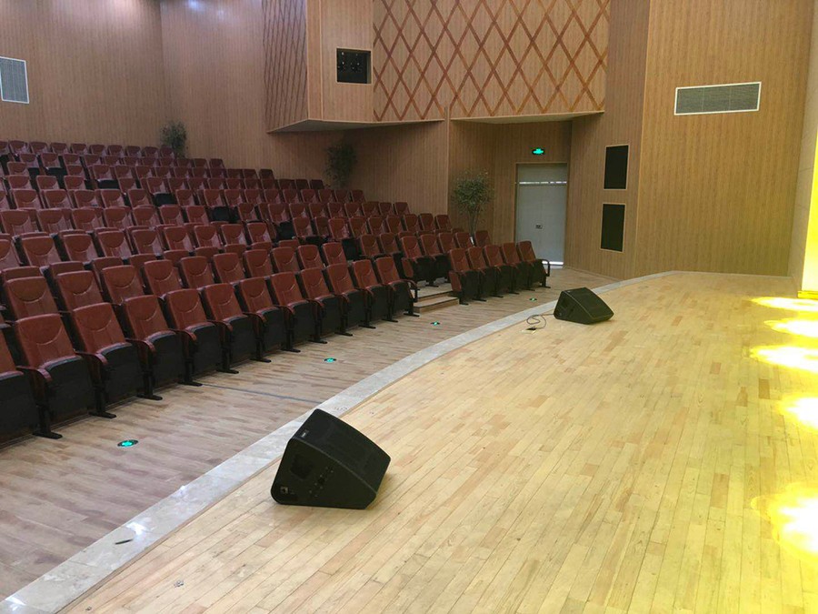 電子科技大學(xué)實(shí)驗(yàn)中學(xué)劇場主擴(kuò)聲系統(tǒng)采用6只90°的T20點(diǎn)聲源線陣列揚(yáng)聲器打造,2只為一組分別吊掛在舞臺兩側(cè)和舞臺中央作為主擴(kuò)聲,2只M12全頻音箱搭配2只B30超低放置在舞臺兩側(cè)作為前補(bǔ)聲以及低音補(bǔ)充,除此之外還有C12作為舞臺監(jiān)聽。整套系統(tǒng)由4臺K3DSP數(shù)字功放驅(qū)動。監(jiān)控室內(nèi)采用英國Midas M32數(shù)字調(diào)音臺以及DL16舞臺接口箱。